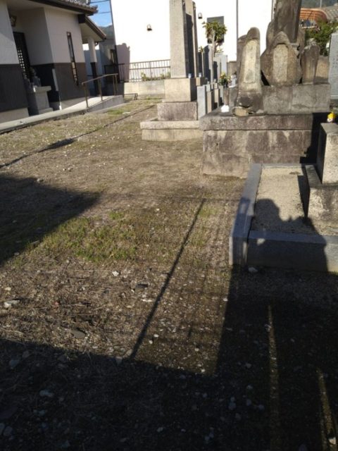 地面が砂利で、歩きにくく車椅子も進まず、雑草も生えてくるので、コンクリートにしてほしいとご依頼いただきました。 八尾市 墓地 コン...
