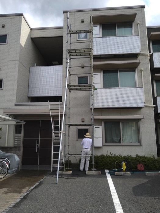 今回は、大阪市平野区で施工したハイツ外壁清掃工事の様子をご紹介します。