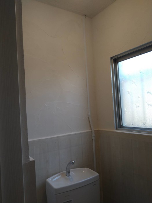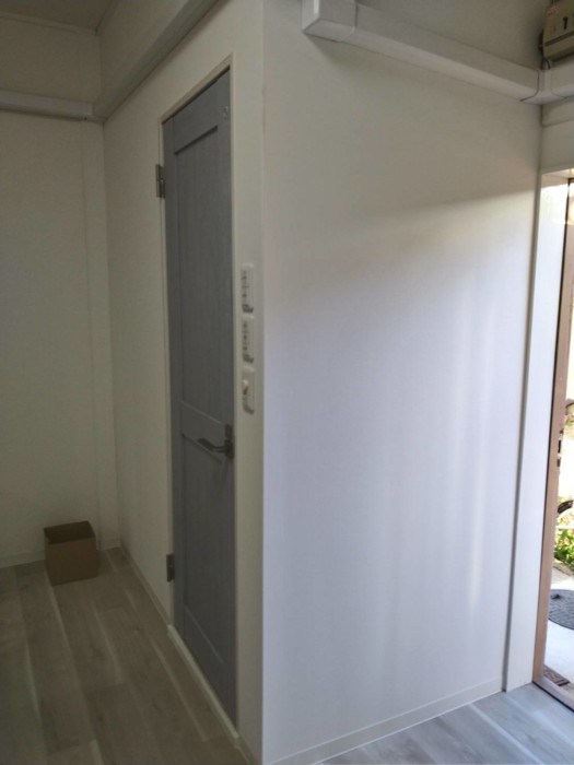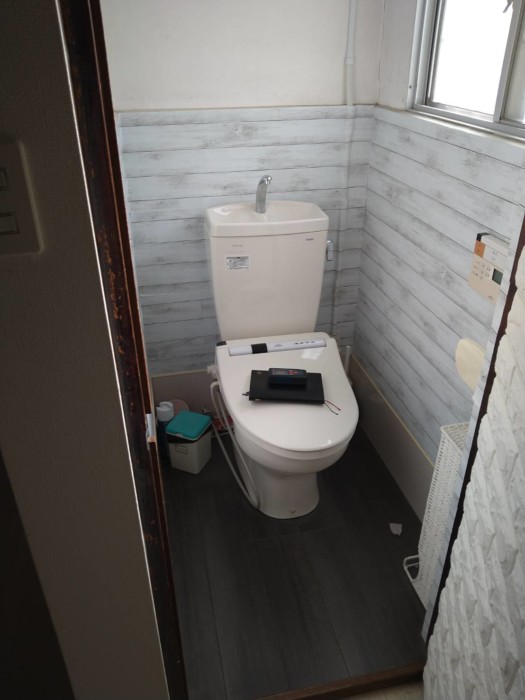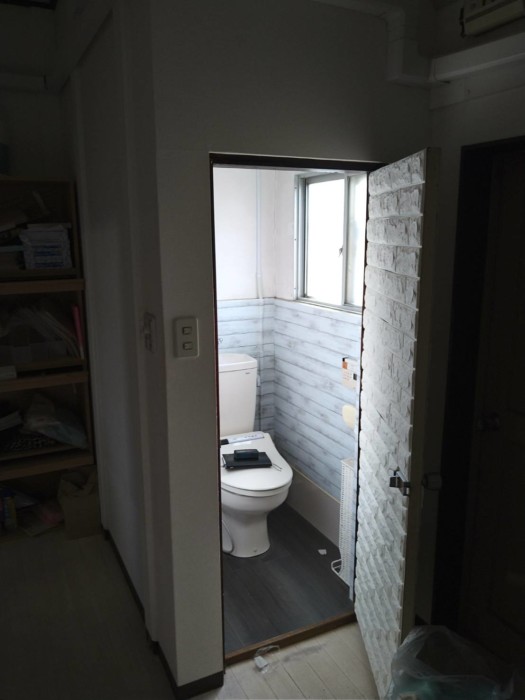 バックヤードのトイレは、入口の位置を変更して個室内を広くいたしました。