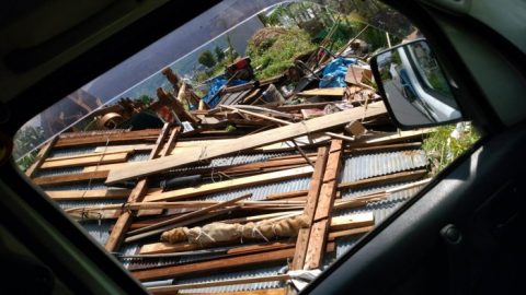 台風が去った後でも、このような倒木の撤去や損壊した建物の補修などが待っています。