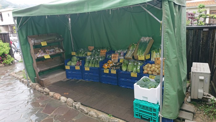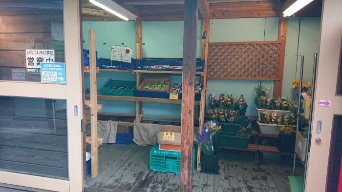 エントランス右側には、地元で収穫された、新鮮野菜やお花なども販売されております