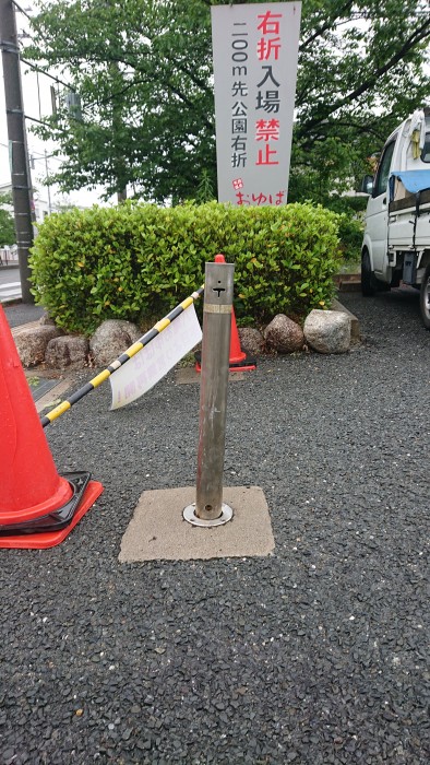 内容はと言いますと、駐車場にあります車止めバリカーポールの撤去でした。休業中にどなたかが当たられたみたいです…